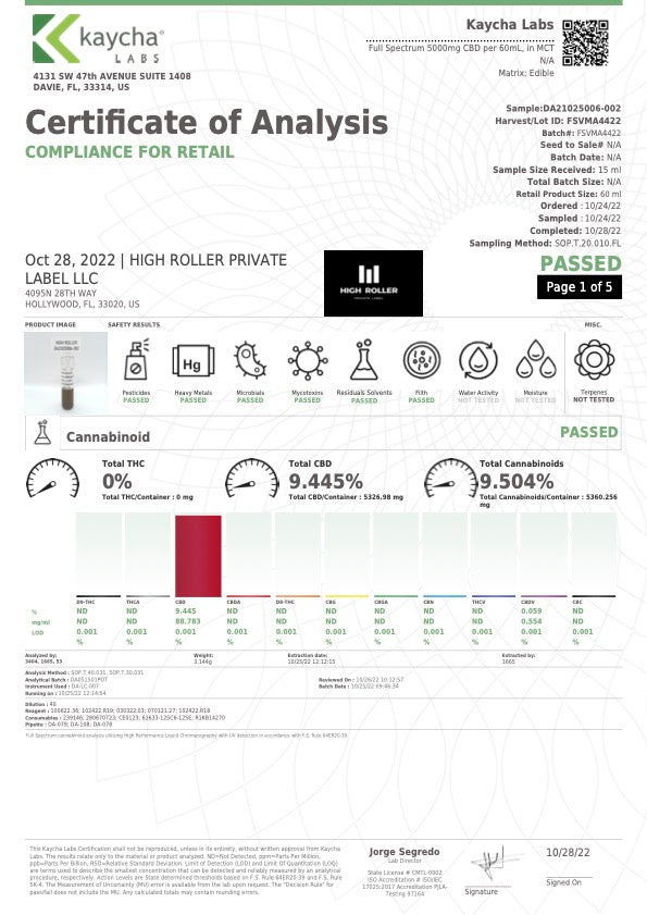 Servings: Serving Size 1/ML 60 Servings Per Container. MCT Oil (Full Spectrum), Serving Size: 1 full dropper (1mL), Total Servings: (60), Approx. 83.3mg CBD per full dropper,
